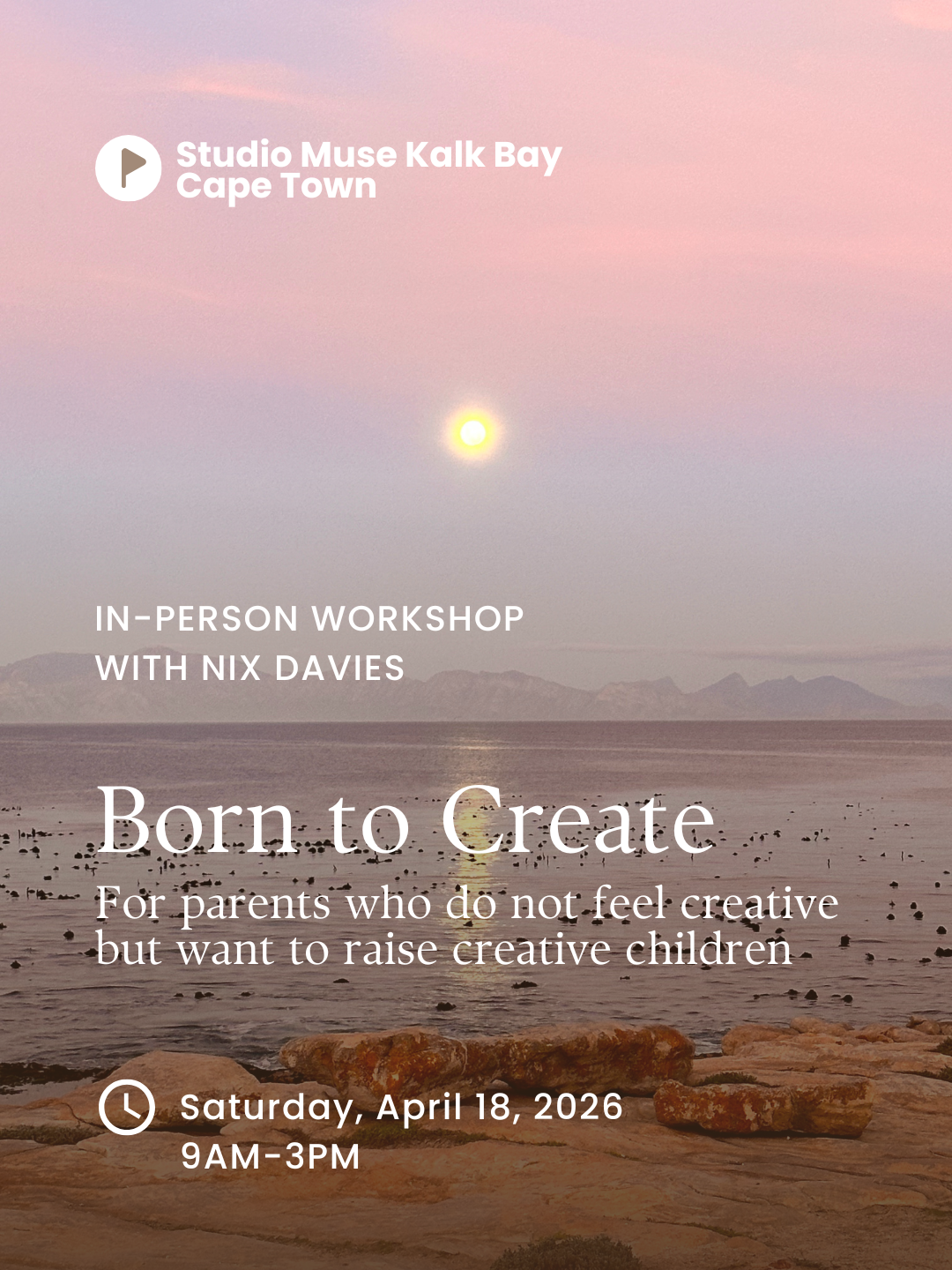 From 9am-3pm on Saturday 18th April at the beautiful Studio Muse in Kalk Bay, Cape Town, we gather for an in-person Born To Create parents' day - a gentle, playful, and deeply practical immersion into what creativity actually is.